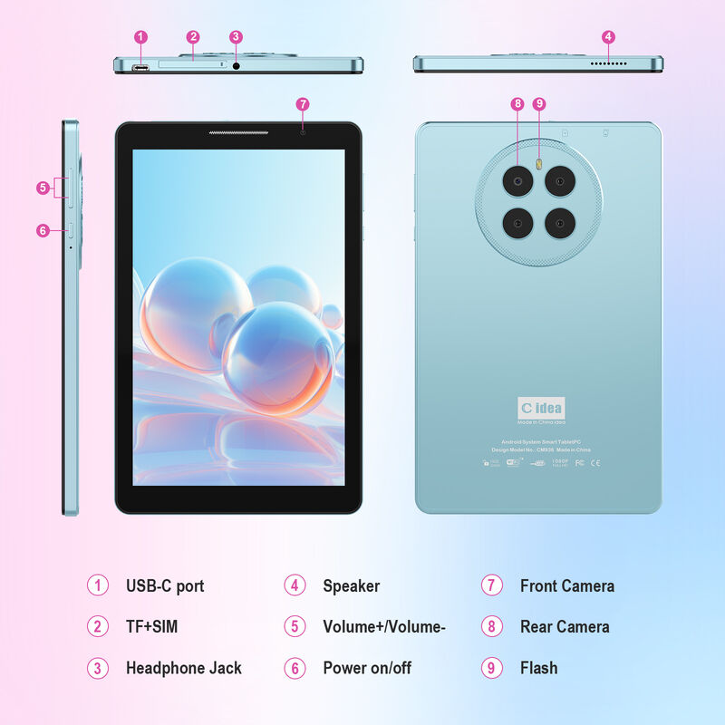 Productbeschrijving: Maak kennis met de C idea CM936, ontworpen om uw digitale ervaring naar een hoger niveau te tillen. Met een krachtige Snapdragon QT615 8*CortexTm-A53 4*1.7GHz+4*1.0GHz en 8 GB DDR-geheugen, zorgt deze tablet voor naadloze multitasking en soepele prestaties voor al uw taken. Met een ruim 8-inch IPS-display en ARM Mali-400 MP2 GPU geniet u van verbluffende beelden en meeslepende game-ervaringen. Bewaar al uw apps, foto's en media eenvoudig dankzij de royale 512 GB EMMC-opslag, uitbreidbaar tot 512 GB via de TF-kaartsleuf. Blijf onderweg verbonden met snelle Wi-Fi en optionele 2G/3G/5G-ondersteuning, en leg elk moment vast met de 8MP-camera aan de achterzijde. Bovendien biedt de CM936 met ingebouwde GPS, Bluetooth en FM-radio veelzijdigheid en gemak, waar u ook gaat. Compleet met een 8000mAh batterij voor langdurige stroom, is de CM817 AIR de ultieme metgezel voor werk, entertainment en alles daartussenin.